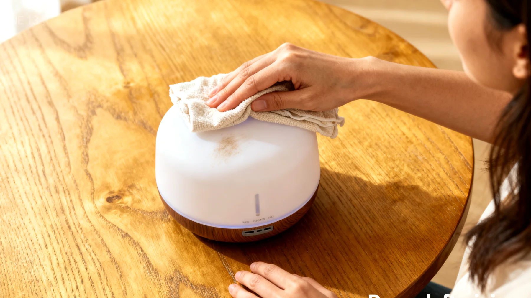 Der Sonntagszyklus sieht so aus: Am frühen Abend wird das restliche Wasser entfernt, der Tank mit einem weichen Tuch getrocknet und anschließend mit einem Gemisch aus warmem Wasser und einem Teelöffel Essig oder Alkohol ausgewaschen. Nach gründlichem Spülen bleibt der Tank offen, bis er vollständig getrocknet ist. Danach folgt die Neufüllung mit frischem Wasser und einem neu gewählten ätherischen Öl.